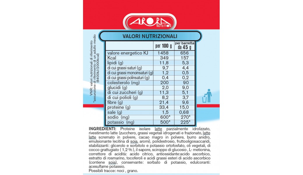 Soia croccante, rivestimento di cioccolato: pasta di cacao, frutta.